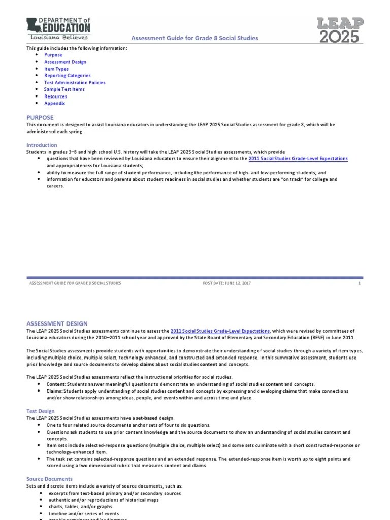 Answer key/rubrics for sample items appendix b: Lumos leap 2025 assessment practice resources were developed by expert teachers for students in grades 3 through 8 and high school. Read more 8th grade leap 2025 answer key : 8.8.1 describe ways in which citizens can organize, monitor, or influence government and politics at the local, state, and national levels 3 54 mc b 8.7.2 evaluate the role and importance of louisiana ports and products in the international economy 5 leap 2025 grade 8 social studies practice test. The leap 2025 science grade 8 test will contains fiv e item sets, sixteen standalone items, and one task set across.